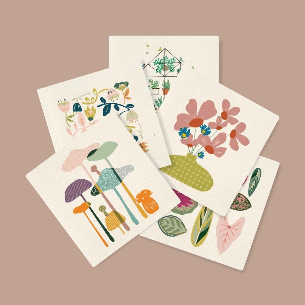 Our dishcloths are screen printed with water-based inks and made only from natural materials, meaning they return to the earth when composted. Unlike microfiber cloths, they contain no plastic or synthetics—just plant-based performance that’s easy on your skin and the planet.